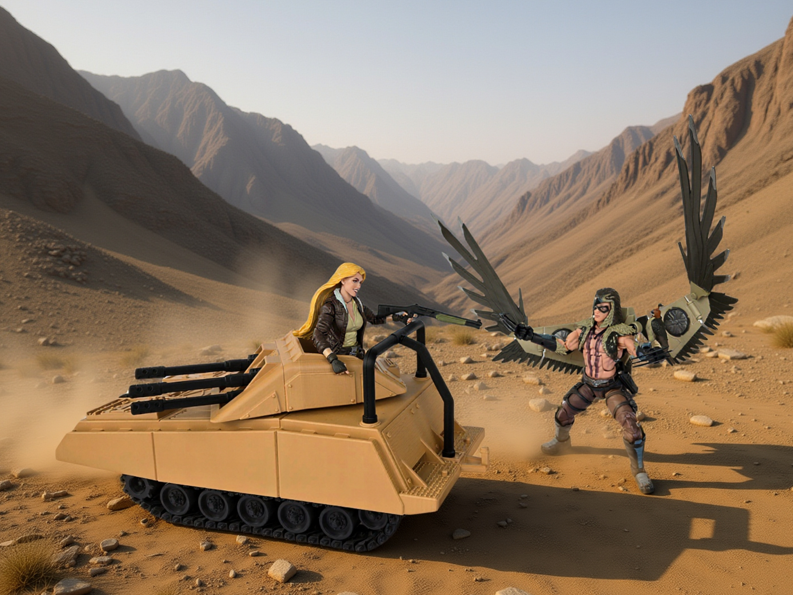 Premium quality, highly detailed 3D print of the Armadillo in desert colors! GI Joe's can easily maneuver in and out of tight spots easily to battle the forces of Cobra! Top turret that rotates and now more detailed twin double barrel guns that elevate. Comes equipped with a new working winch to tow vehicles back to safety or get them unstuck. New trailer hitch for towing our Road Toad or an MMS. Yet another new feature is working linked tank treads that make it sound like a tank when rolled on your carpet! Made to fit GI Joe Classified scale, Valaverse, or other 1:12 scale figures. No action figures or other props are included, for illustration only.
