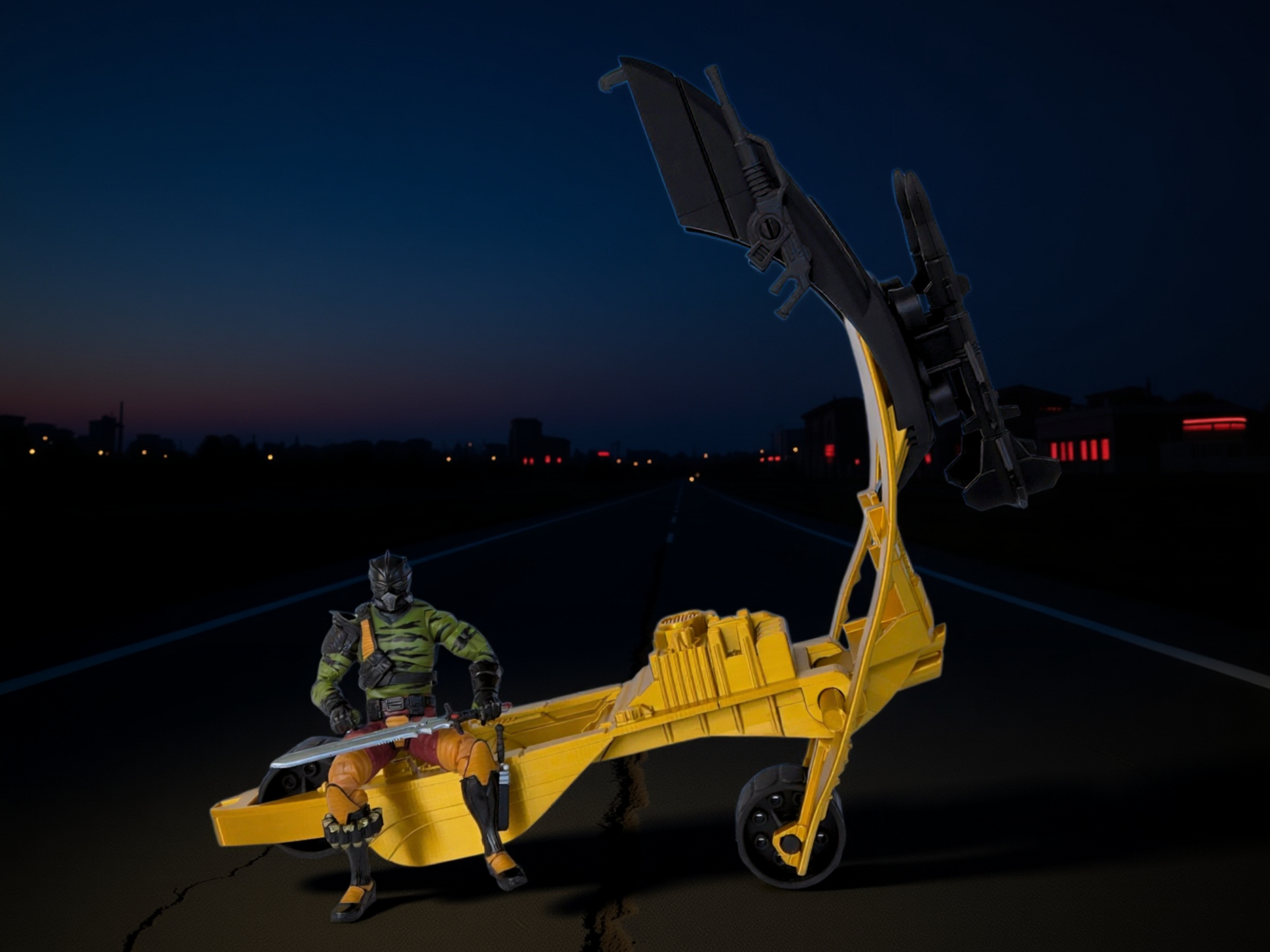 Premium quality, highly detailed 3D print of Darklon's Evader! Darklon's Command Vehicle transports Darklon to arms deals to keep the battle waging. Twin surface to air missile launcher on top rotates. Comes equipped with side mounted guns to destroy your enemies. Disguised button on front releases cockpit and allows it to rotate for easier access for figures to quickly enter and escape . Made to fit GI Joe Classified scale, Valaverse, or other 1:12 scale figures. No action figures or other props are included, for illustration only.