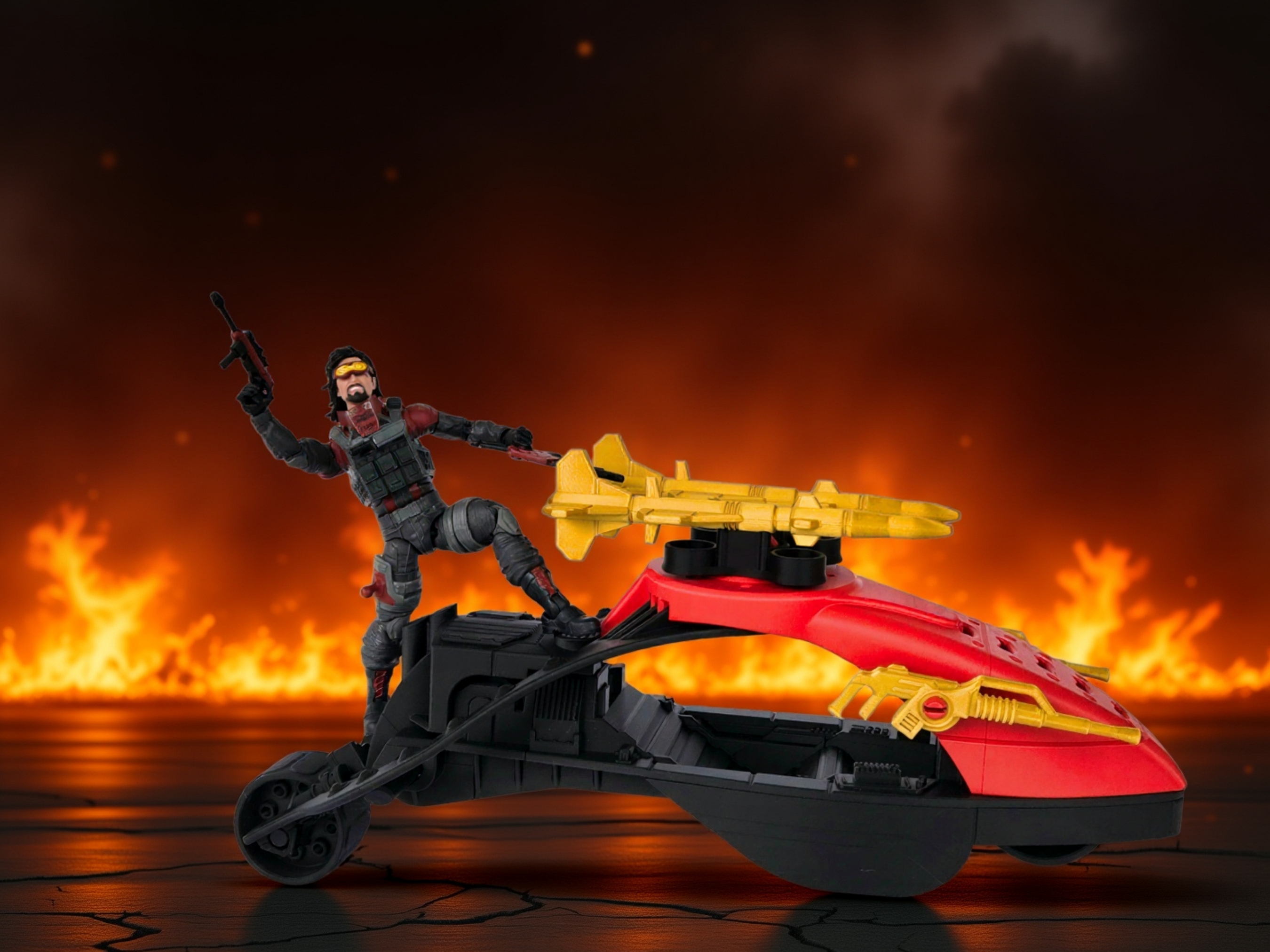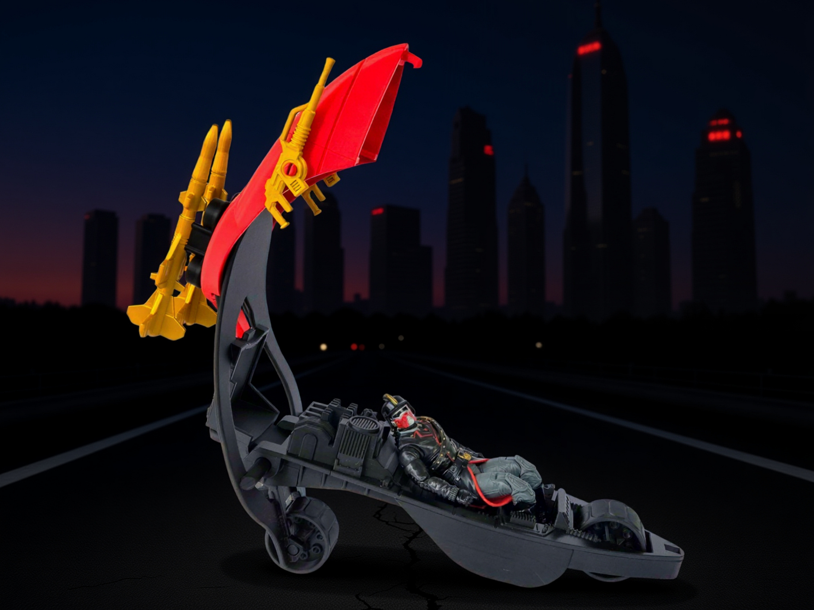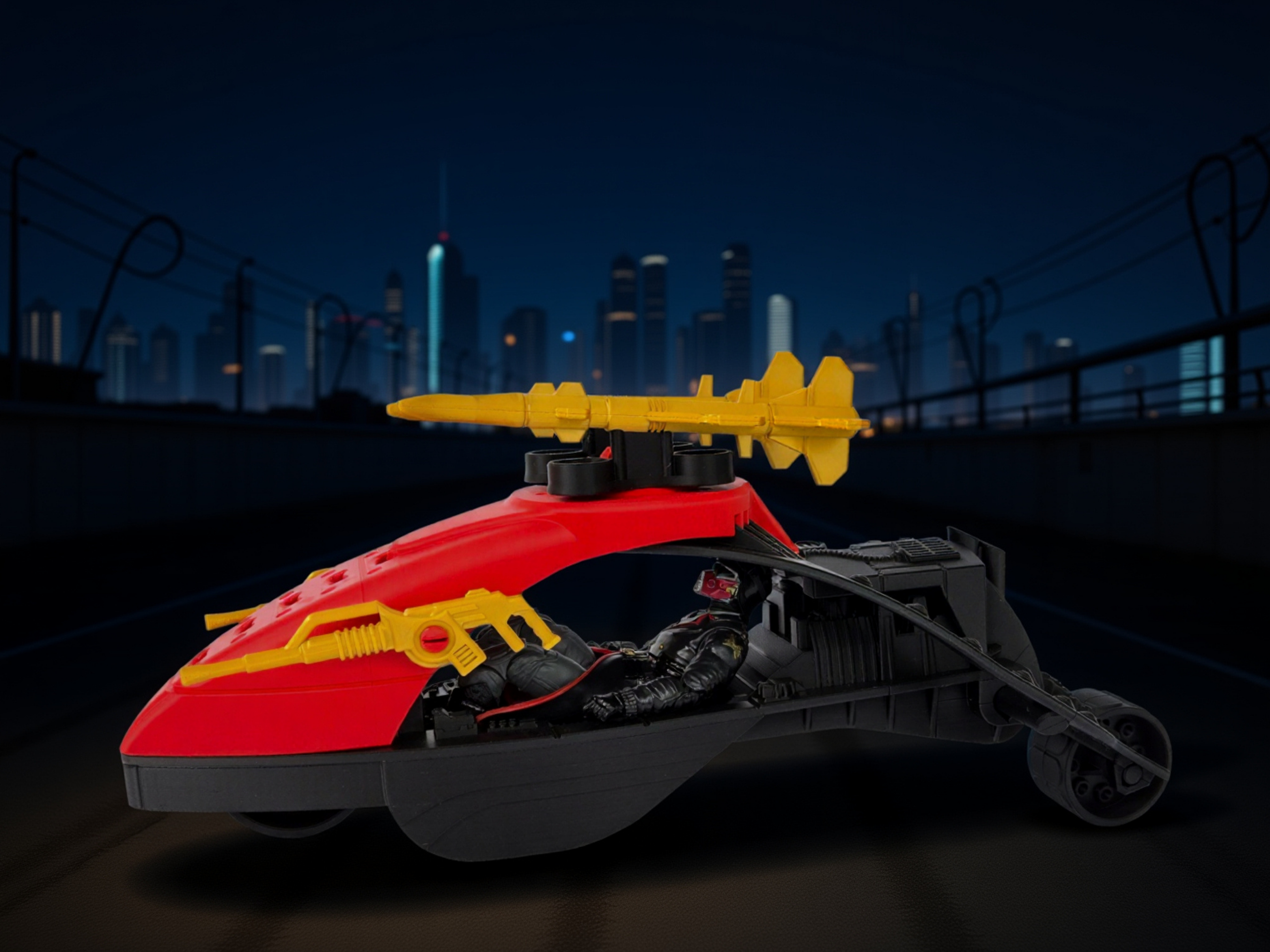 Premium quality, highly detailed 3D print of the Evader for Iron Grenadier Troops, IG B.A.T.'s, or Metal Head! Transports Darklon's troops to arms deals to keep the battle waging. Twin surface to air missile launcher on top rotates. Comes equipped with side mounted guns to destroy your enemies. Disguised button on front releases cockpit and allows it to rotate for easier access for figures to quickly enter and escape . Made to fit GI Joe Classified scale, Valaverse, or other 1:12 scale figures. No action figures or other props are included, for illustration only.