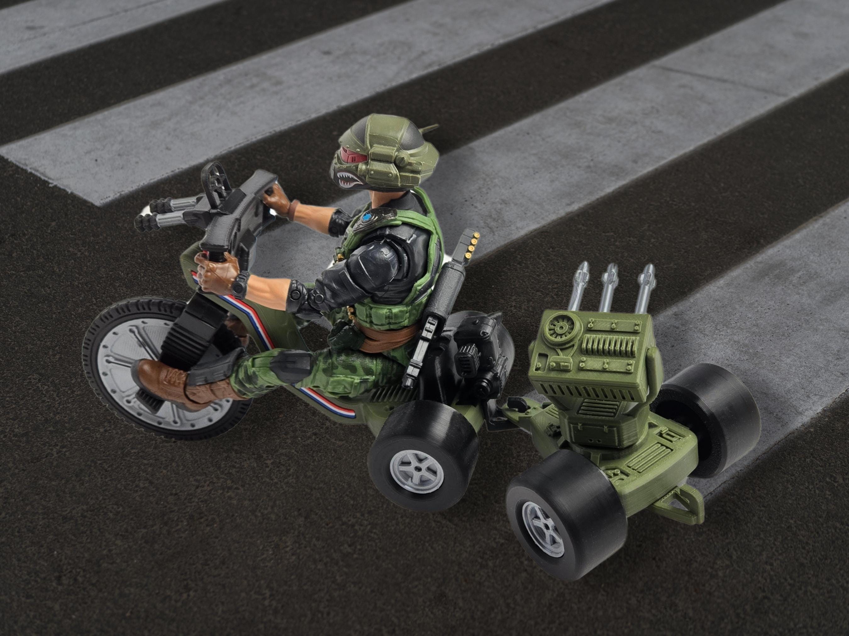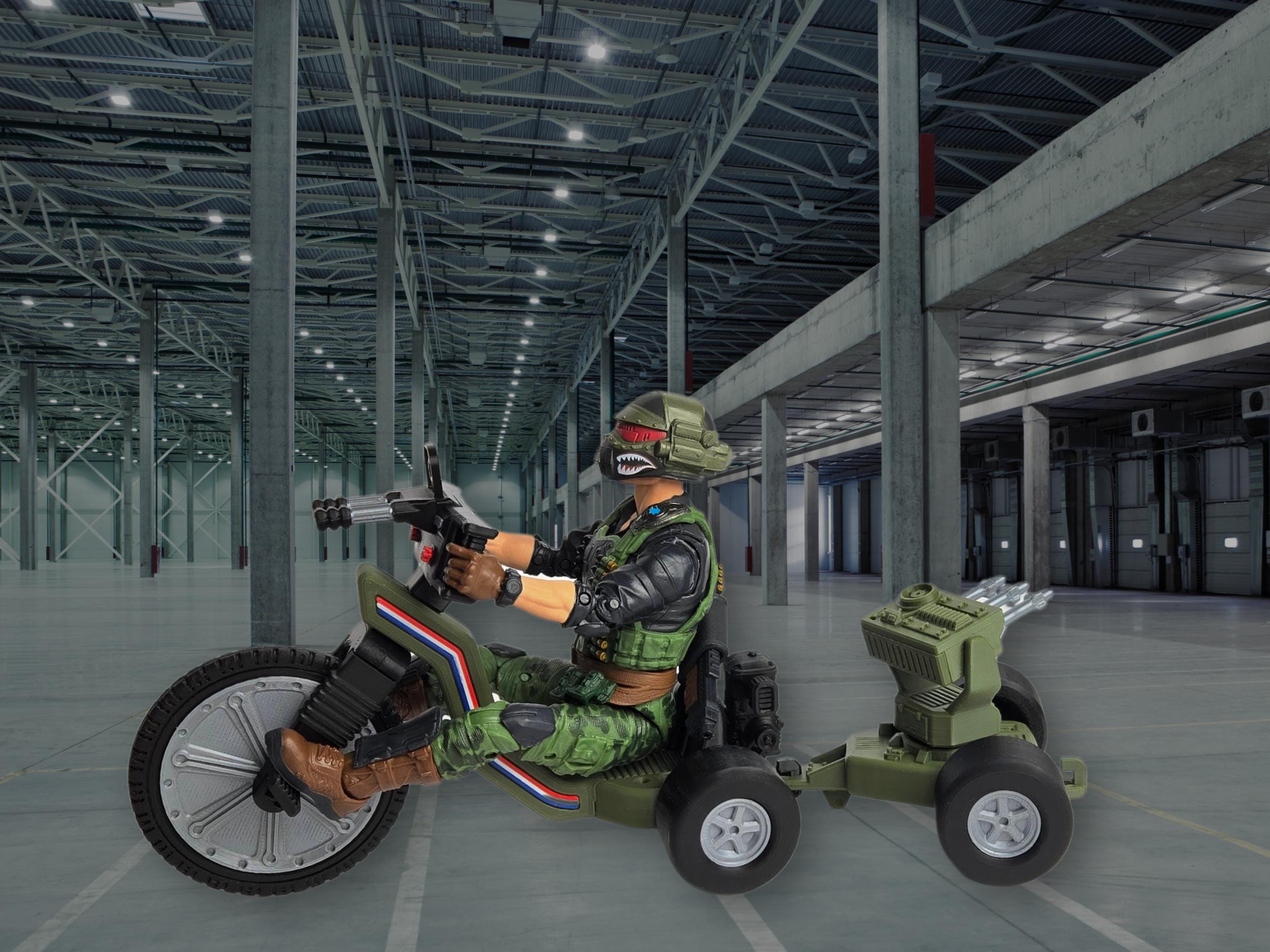 Tri Fighters are being upgraded with even more firepower! Engineered to be towed behind a Tri Fighter, the Nano MMS was designed to destroy enemy vehicles, aircraft, or troops. Capable of firing up to 3 missiles, Nano MMS' can be pivoted in any direction to lock on enemy positions before obliterating them! Made to fit GI Joe Classified scale, Valaverse, or other 1:12 scale figures. No action figures, other vehicles, or props are included, for illustration only.