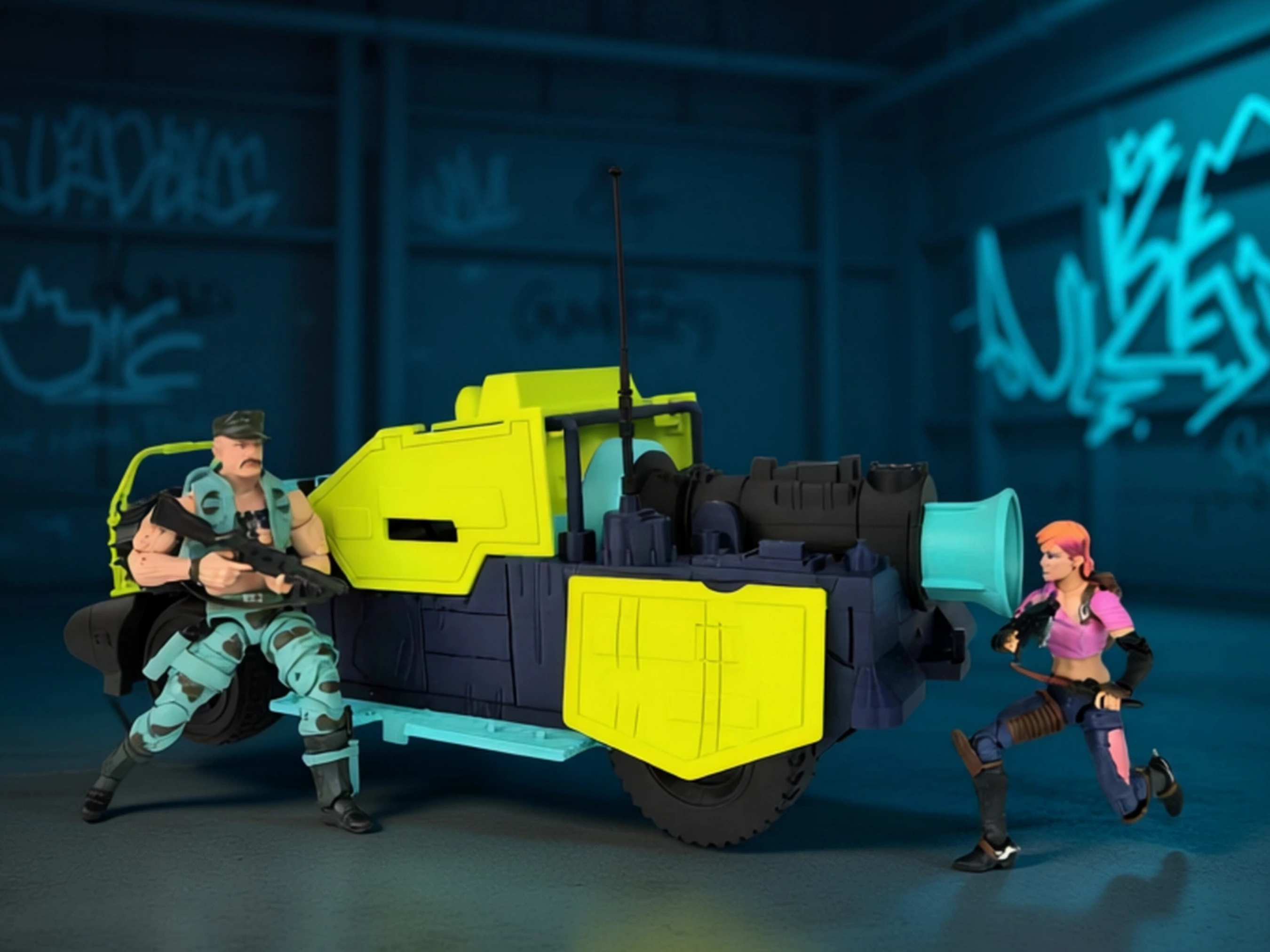 Premium quality, highly detailed 3D print of the Dreadnoks' Thunder Machine in Sears Exclusive Ground Assault colors! A jet powered engine, four wheel drive land vehicle fabricated from used auto and truck parts. Fully equipped with high tech battle gear specifically designed by the enemy weapons supplier, Destro. Twin multi-barrel gun actually rotates just like the original. Comes equipped with an armored windshield and armored raisable windows. Rocket nozzle rotates also. Made to fit GI Joe Classified scale, Valaverse, or other 1:12 scale figures. No action figures or other props are included, for illustration only.